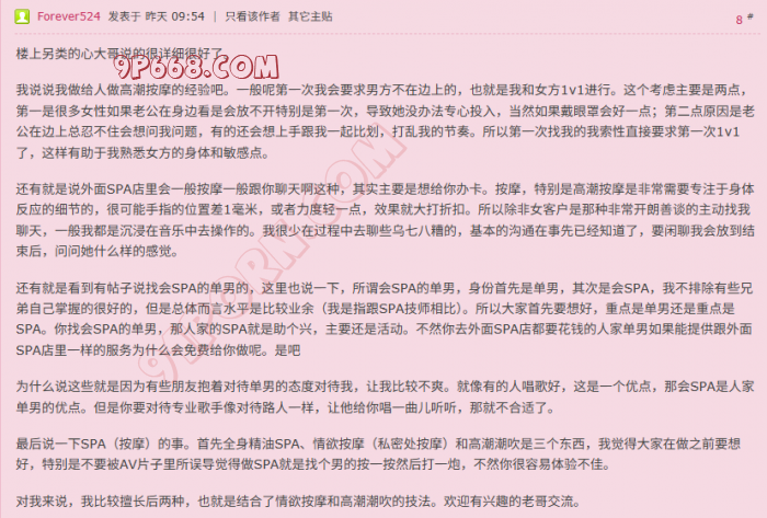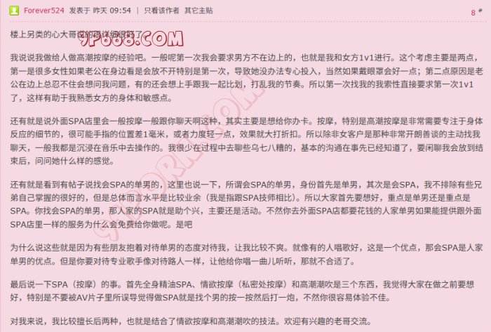 大家好,这里是小潮啊昨天在周末打算玩第一次异性spa怎么玩比较刺激帖子下回复了一些关于SPA按摩的看法,还是有不少兄弟来交流。